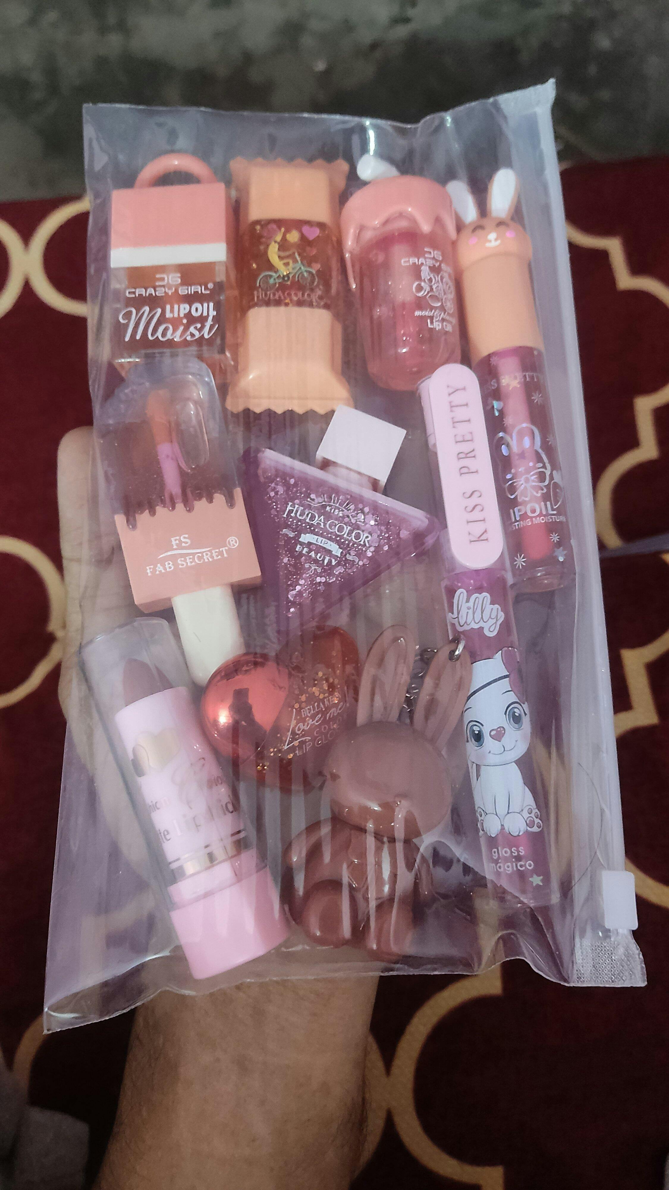 | Includes | 9 korean lip gloses & lip balm, 1 lipstick |